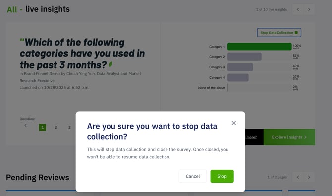 If you discover a critical error in your survey or need to cease data collection immediately, you can manually stop the survey from your dashboard. This ensures you have full control over your fieldwork, even outside of standard support hours.